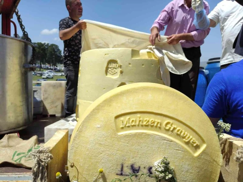 Ardahan’ın Göle ilçesinde düzenlenen ’21’inci Uluslararası Göle Kültür ve Kaşar Festivali’nde bir şirket tarafından yapılan 1 tonluk dev kaşar peyniri, ilgi odağı oldu.