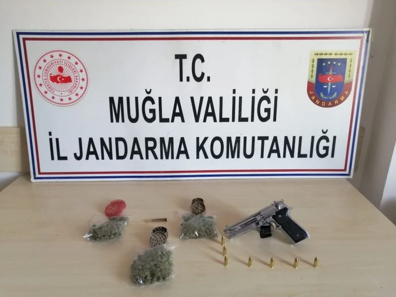 Muğla İl Jandarma Komutanlığı’na bağlı Fethiye İlçe Jandarma Komutanlığı ekiplerince yapılan uyuşturucu operasyonunda uyuşturucu madde, uyuşturucu içiminde kullanılan malzemeler ve ruhsatsız tabanca ele geçirildi.