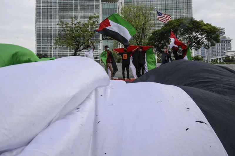 Endonezya’da Filistin karşıtı eylemlere katılanlar ABD Büyükelçiliği önünde toplandı. İsrail karşıtı sloganlar atan Endonezyalılar, İsrail’in saldırılarını sonlandırması çağrısında bulundu. İsrail karşıtı bir başka protesto da ABD’de düzenlendi. New York’ta bir araya gelen binlerce kişi Filistin’e destek verdi.