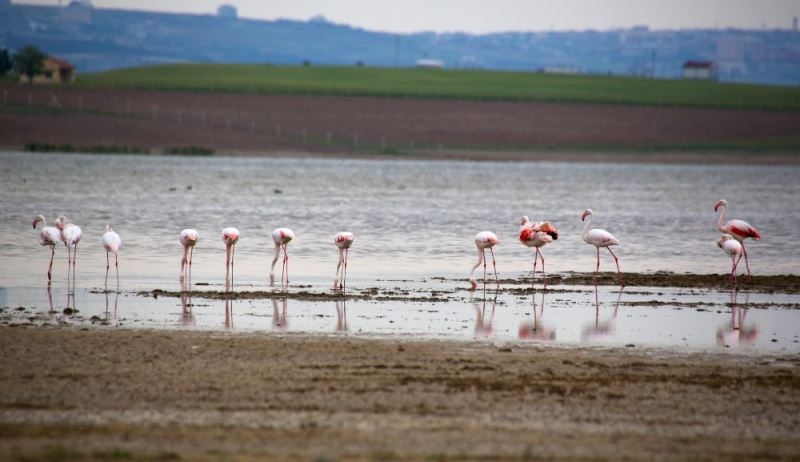 Türkiye’de allı turna adıyla bilinen flamingolar göç takviminin gelmesiyle Gölbaşı semalarında renkli görüntüler oluşturdu.