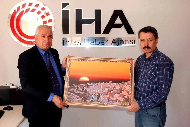 NEFSAD Başkanı Bilal Mente, İhlas Haber Ajansı Adıyaman Bürosunu ziyaret etti. Adıyaman Muhabiri Ahmet Arslantaş’a Nemrut Dağı fotoğrafını hediye eden Bilal Mente, tarih ve turizm haberleri yaparak Adıyaman’ın tanıtılmasına katkı sağladığı için teşekkür etti.