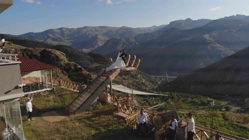 Gümüşhane’nin merkeze bağlı Yeşilyurt köyünde bulunan evlerini fotoğraf platosuna çeviren fotoğrafçı aile, bahçelerine kurdukları insan eline benzeyen platformda fotoğraf çekimi için kendilerini tercih eden çiftleri adeta el üstünde tutuyor. Platform Doğu Karadeniz’de tek olma özelliği taşıyor.