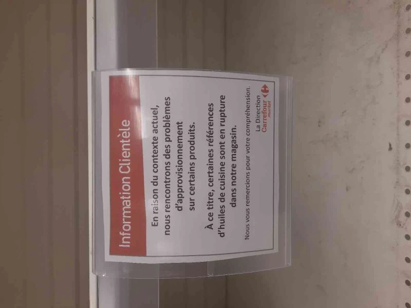 Ukrayna-Rusya savaşının ardından ortaya çıkan ayçiçek yağı sıkıntısı Fransa’ya ulaştı. Ülkedeki birçok zincir markette ayçiçek yağı reyonları boş kalırken, bazı marketlerde ayçiçek yağı alımına sınırlama getirildi. Bir market boş ayçiçek yağı reyonuna astığı yazılarda, "Mevcut şartlar nedeniyle bazı ürünlerde tedarik sorunları yaşıyoruz. Bu nedenle, bazı yemeklik yağ markaları stokta kalmamıştır" ve "Yağ alımı müşteri başına maksimum 3 ürün" ifadelerini kullanarak müşterilerine açıklama yaptı. Bir diğer zincir marketi ise yağ alımını aile başına 3 şişeyle sınırlandırdı. Yapılan açıklamada "Küresel kıtlık nedeniyle, yağ şişesi sayısını hane başına 3 şişe ile sınırlamaya karar verdik" ifadeleri kullanıldı.