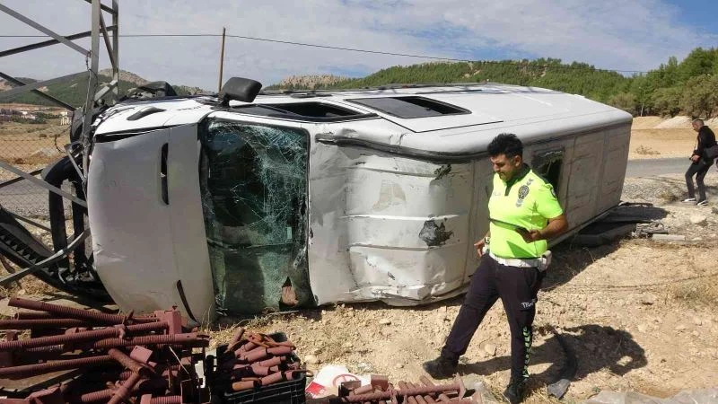 Adıyaman’da, rampadan indiği esnada freni boşalan minibüs kontrolden çıkarak şarampole yuvarlandı.