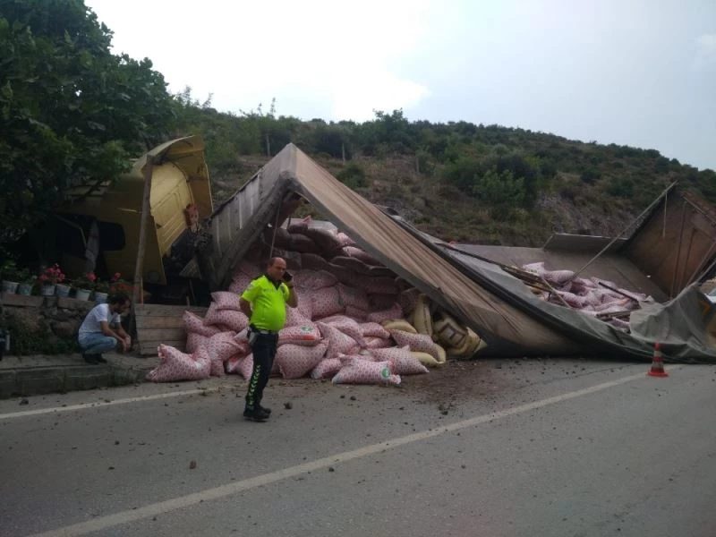 Kocaeli’nin Körfez ilçesinde rampa yoldan inerken freni boşalan yem yüklü tırın yol kenarındaki kümesin üzerine devrilmesi sonucu 7 tavuk telef oldu. Kazada sürücü ise yara almadan kurtuldu.