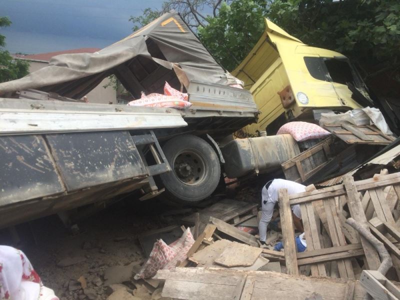 Freni boşalan tır kümesin üzerine devrildi, 7 tavuk telef oldu