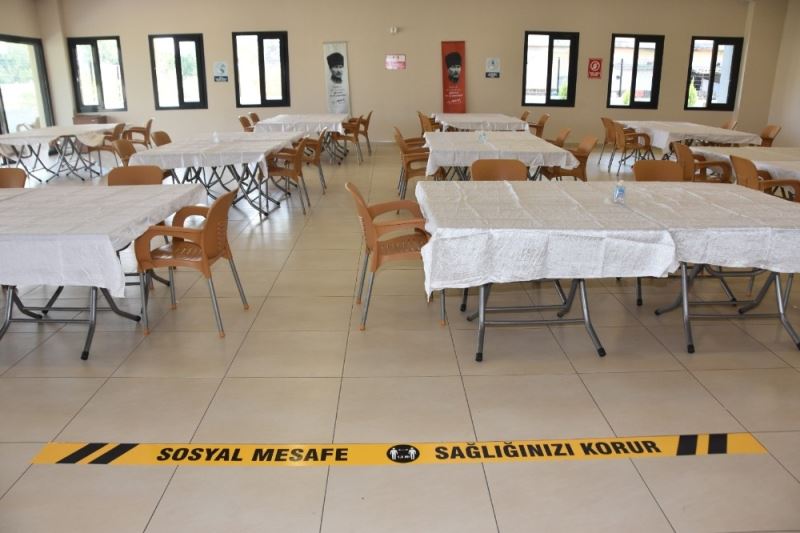 Sosyal mesafe alanlarının belirlendiği toplum merkezi pandemi riskine önlem olarak dip köşe dezenfekte edildi. Yerleşim planı ve organizasyon detayları yeni kuralara göre yeniden belirlendi.