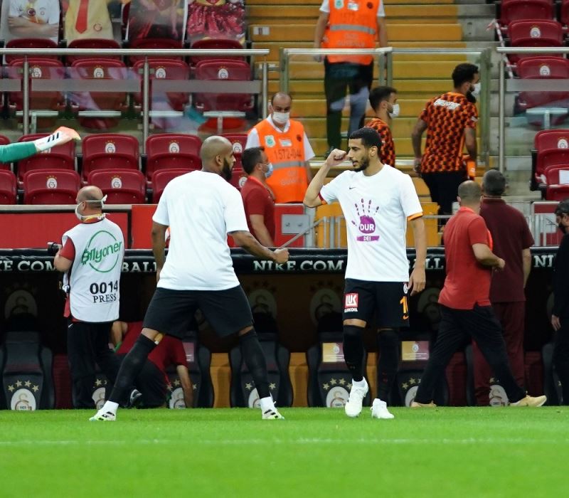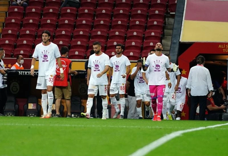 Galatasaray-Göztepe maçı öncesinde iki takım futbolcuları farkındalık oluşturmak ve destek olmak için ’Kadına şiddete dur de’ yazılı tişörtlerle seremoniye çıktı.