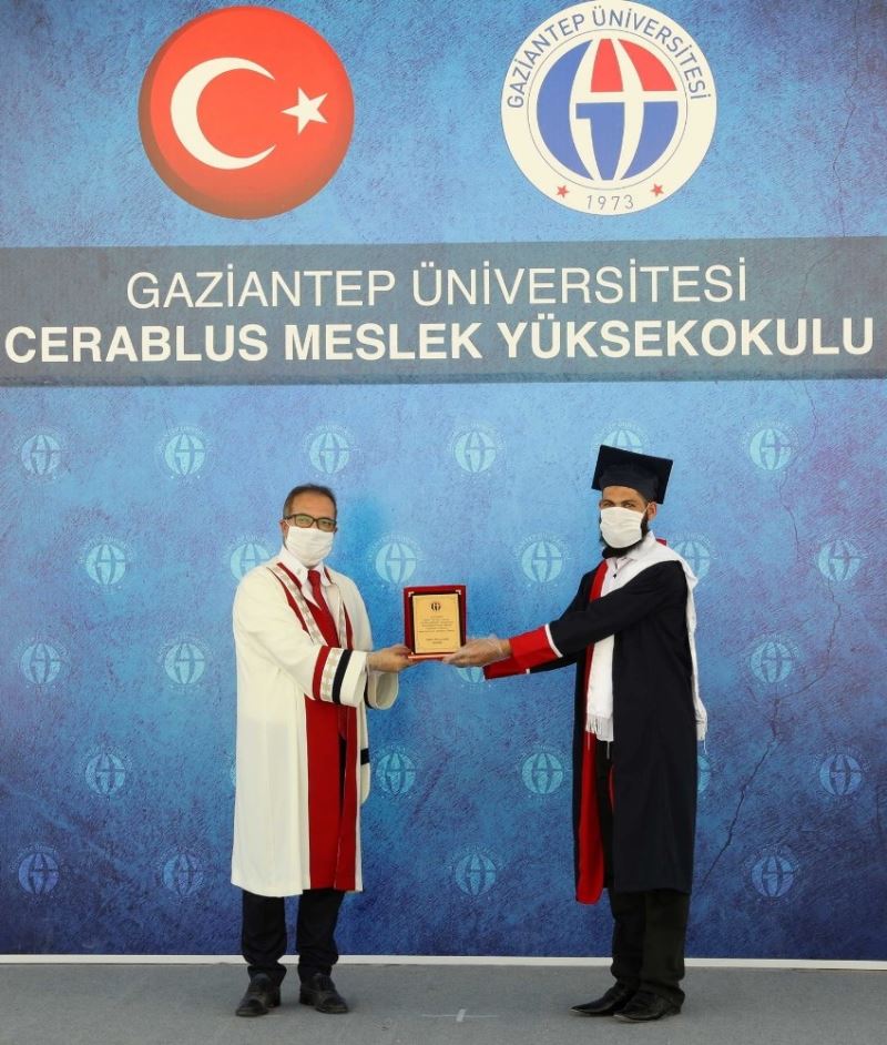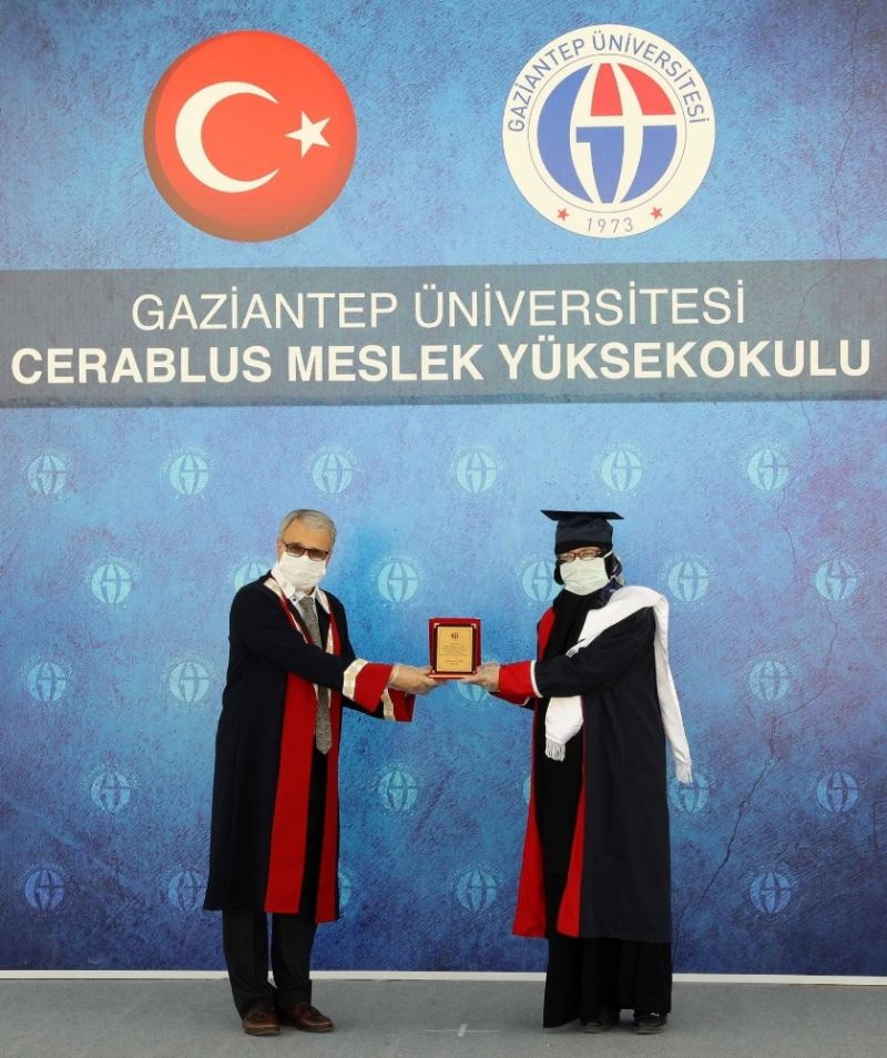 Gaziantep Üniversitesi’nin Suriye’deki eğitim kurumlarından Cerablus Meslek Yüksekokulu’nda eğitimlerini tamamlayan 100 Suriyeli öğrenci mezun olarak diploma aldı. Pandemi süreci nedeniyle online olarak düzenlenen törende, 15 öğrenci mezunlar adına kep attı.