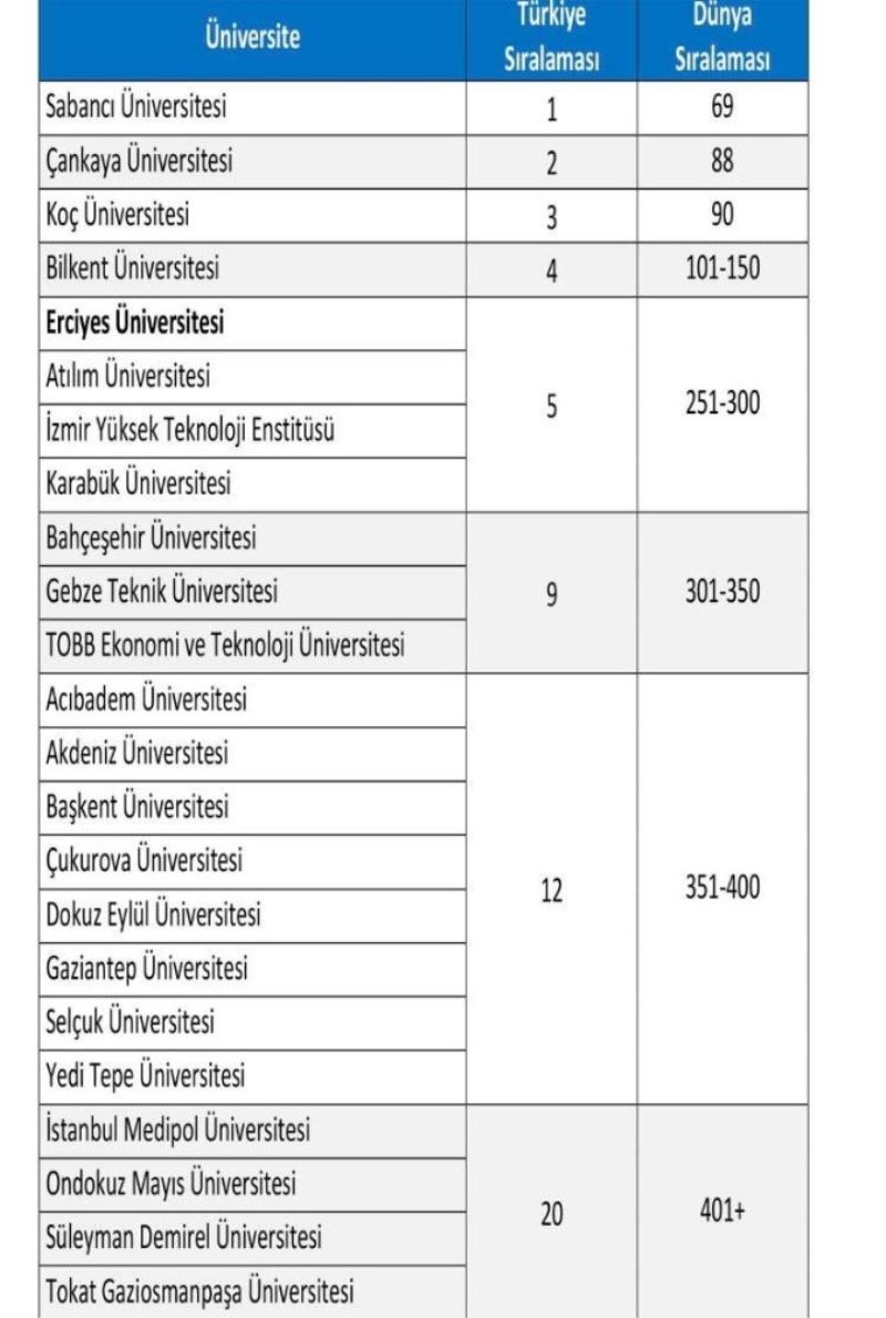 Dünyanın en iyi üniversiteleri listesindeyiz