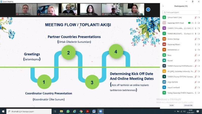 Proje kapsamında, geçtiğimiz günlerde ulus ve ulus ötesi ortakların katılımıyla çevrimiçi bir tanışma ve koordinasyon toplantısı düzenlendi. Gaziantep Üniversitesi, Gaziantep İl Milli Eğitim Müdürlüğü, Şahinbey Belediyesi Bilim ve Sanat Merkezi, Portekiz’den Social Raquel Lombardi, Makedonya’dan EUNOIA, İngiltere’den Restorative Justice for All International Institute ve Polonya’dan Akademia Humanistyczno - Ekonomiczna w Lodzi’den katılan proje ekibi üyeleri kendilerini ve kurumlarını tanıtan sunumlar gerçekleştirdi.