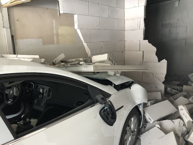 Büyükçekmece’de iddiaya göre gaz ile freni karıştıran sürücü, inşaat halindeki dükkanına daldı. O anlar güvenlik kameralarına yansıdı.