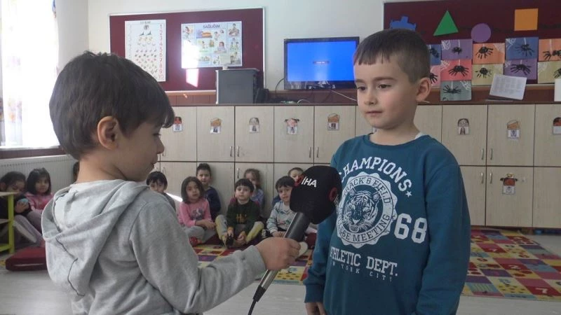 Gazetecilik mesleği tanıtılan anaokulu öğrencileri kendi haberlerini kendileri yaptı
