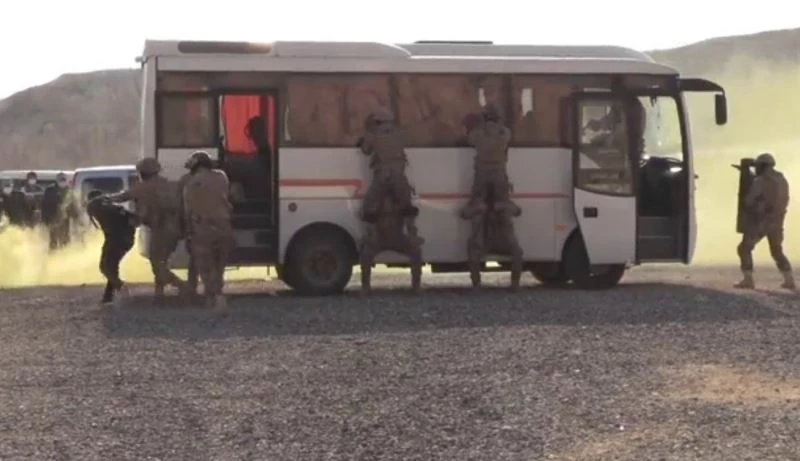 Gaziantep’te yapılan tatbikat, senaryo gereği havalimanından çıkan minibüstekilerin 112’yi araması ile start aldı.Yolda alınan güvenlik tedbirleri ile minibüs, Körkün Sanayi Sitesi’ne yönlendirilerek, buradaki boş arazide durduruldu. Ardından zırhlı araçlarla bölgeye intikal eden özel harekat polislerinin minibüse müdahaleye hazırlandığı esnada patlayıcı ihtimaline karşı sinyal kesiciler devreye alındı. Sis bombalarının da kullanıldığı tatbikatta yolcuları rehin alan 1 kişi sağ olarak yakalandı. Gerçeğini aratmayan başarılı tatbikat, özel harekat polis ekiplerinin otobüsün önünde toplu fotoğraf çekimiyle sona erdi.