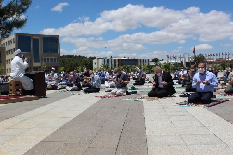 Gaziantep Üniversitesi 15 Temmuz Demokrasi Meydanı’nda kılınan cuma namazına Gaziantep Valisi Davut Gül ile birlikte kent protokolü de katıldı. Namaz kılanların tıbbi bez maske takması, herkesin kendi seccadesini yanında getirmesi ve sosyal mesafeye uygun saf düzeni alınması dikkat çekti.