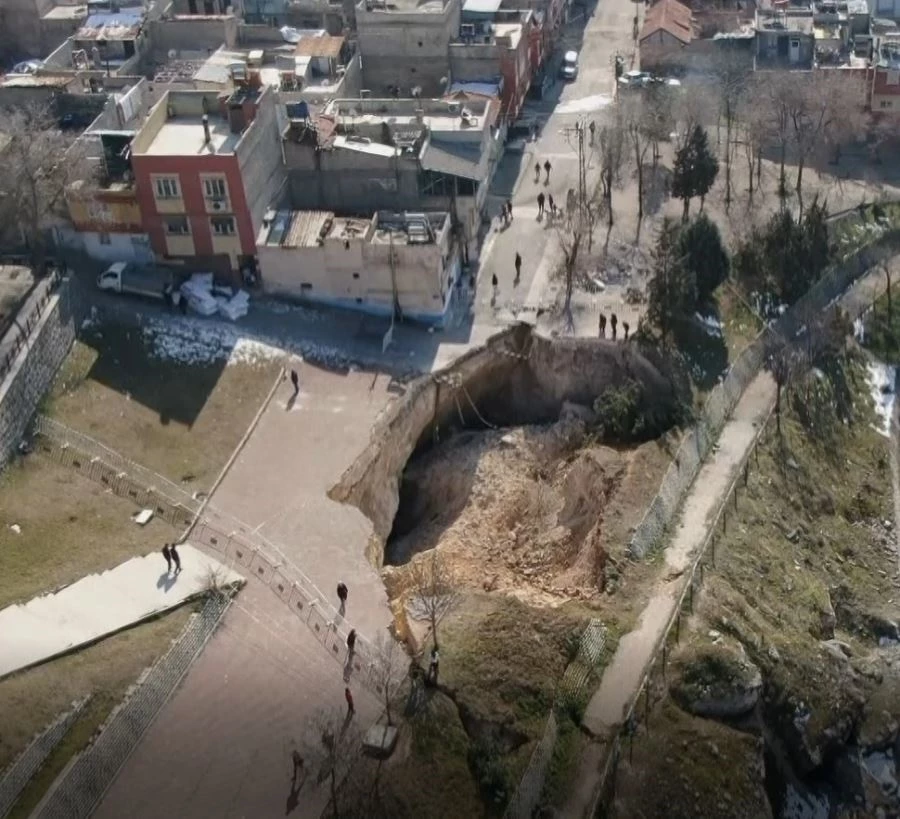 Kahramanmaraş merkezli yaşanan 2 büyük depremin ardından Gaziantep'te bir parkta 30 metre genişliğinde 8 metre derinliğinde dev obruk oluştu.