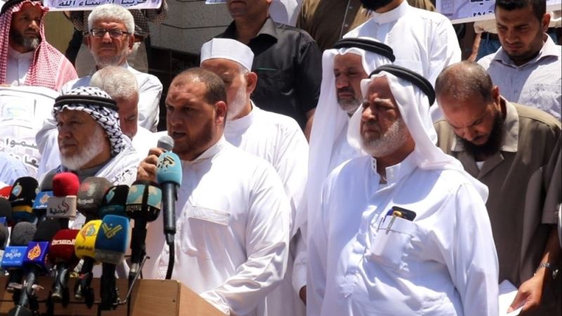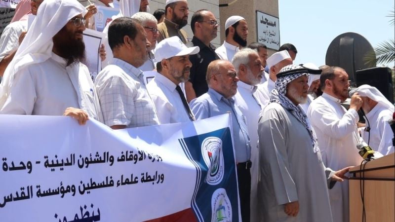 Gazze’de Filistinli Alimler Birliği, İsrail’in Mescid-i Aksa’nın Rahmet Kapısı Mescidi’ni kapatma kararına karşı protesto gerçekleştirdi.