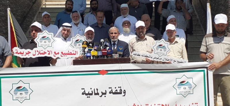 Gazze’de bir araya gelen Filistinli siyasetçiler, İsrail’le normalleşme kararı alan Birleşik Arap Emirlikleri’ni protesto etti.