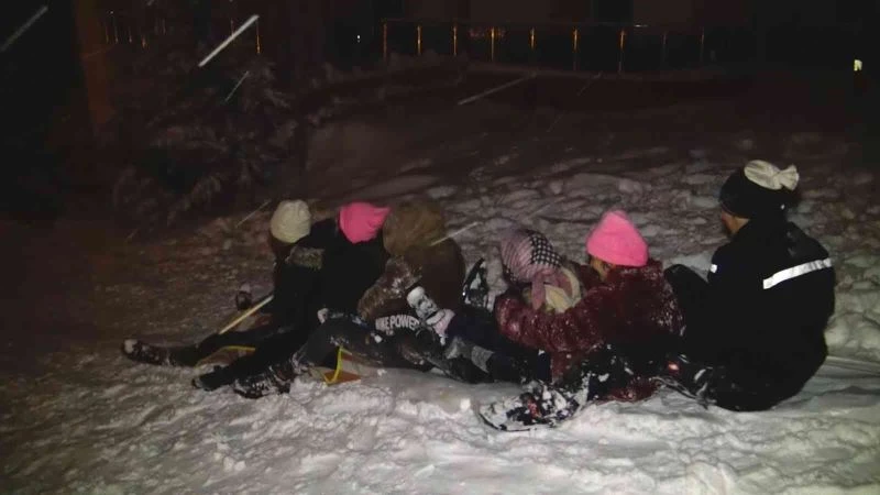 Gece yarısı naylon çuvallarla kaymanın keyfini yaşadılar