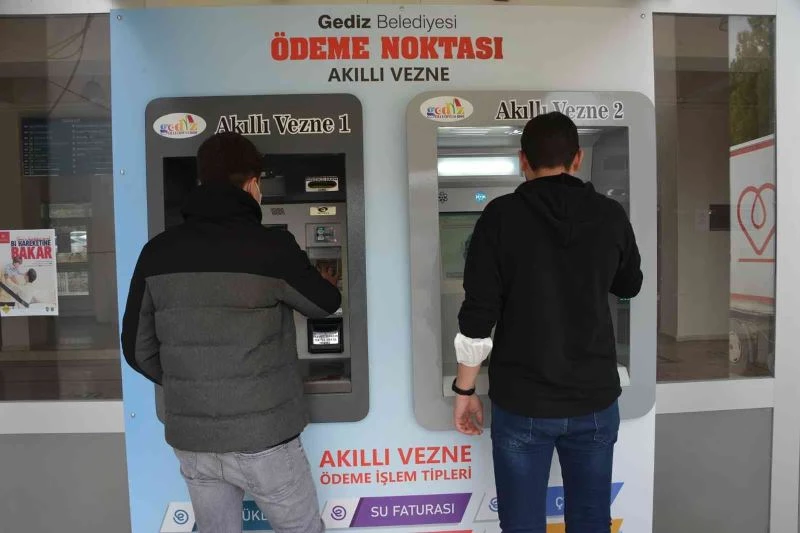 Gediz Belediye Başkanı Muharrem Akçadurak yaptığı açıklamada; “Hizmette ulaşımı hızlandırmak için belediye hizmet binamızdaki akıllı vezne sayımızı ikiye çıkardık. Vatandaşlarımıza 7 gün 24 saat hizmet veren bu veznelerimizle, dijital su sayacı abonesi, abone kartlarına nakit ya da kredi kartı ile ödeme yaparak su yükleyebilme imkanı sunuyoruz. Ayrıca su faturası ödemeleri, emlak borç ödemeleri, ilan - reklam ödemeleri ile ÇTV borçlarını da hemşerilerimiz buralardan ödeyebilirler” dedi.