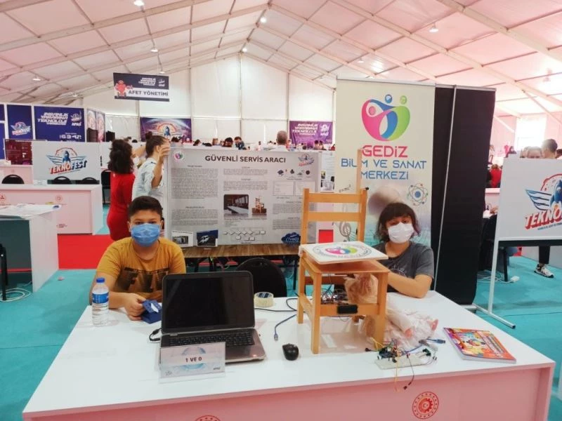 Gediz Bilim Sanat Merkezi (BİLSEM)’de eğitim gören Selcen Berru Yıldırım ve Yiğit Akteke isimli 2 öğrencinin danışman öğretmenleri ile birlikte insanlık yararına teknoloji ihtiyacı için hazırladıkları “Güvenli Servis Aracı” projeleri ile İstanbul Atatürk Havalimanında yapılan Teknofest Havacılık, Uzay ve Teknoloji Festivaline finalist olarak katılarak projelerini tanıttılar.