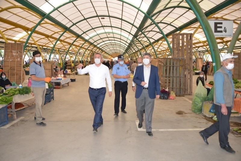 Pazar yerinde alınan tedbirler hakkında da bilgi veren Başkan Akçadurak; “Her bir satış yeri arasında en az 3 metre mesafe olacak şekilde düzenlenirken, sebze ve meyvelerin tüketicilerce temas edilmeden, doğrudan pazarcı esnafı tarafından hijyen koşullarına uyularak satışının yapılması sağlandı. Ayrıca pazar yerinde çocukların ve 65 üstü vatandaşlarımızın girmemesi konusunda yoğun tedbirler alan belediye zabıta ekiplerimiz, denetimlerini yaparak esnaf ve vatandaşlarımıza gerekli uyarılarda bulunuyorlar. Vatandaşlarımızın sağlığının devamlılığı için İlçemiz pazar yerindeki yoğunluğu azaltmak adına aldığımız kararlar; Halkımızın daha iyi hizmet alabilmesi adına daha fazla gün açık kalmak koşulu ile yaşanan tehlikeye karşı güvenli alış veriş hizmeti sunuyoruz. Vatandaşlarımızı korumak ve salgının yayılmasını engellemek adına belediye olarak elimizden gelen tüm gayreti gösteriyoruz ve tedbirlerimizi ilçe genelinde büyük titizlikle sürdürmeye devam ediyoruz. Alınan tedbirlere vatandaşlarımızın büyük titizlikle uyduğunu gördük, İnşallah bu Korona virüs tehdidini de birlik, berberlik ve dayanışma içinde hep birlikte yeneceğiz, havaların ısınması mücadelemizde bizleri rehavete kaptırmasın, kurallara ilk günkü gibi uymaya devam edelim. Vatandaşlarımızdan tek isteğimiz maskesiz çıkmamaları ve sosyal mesafe kurallarına uymalarıdır ” açıklamasında bulundu.