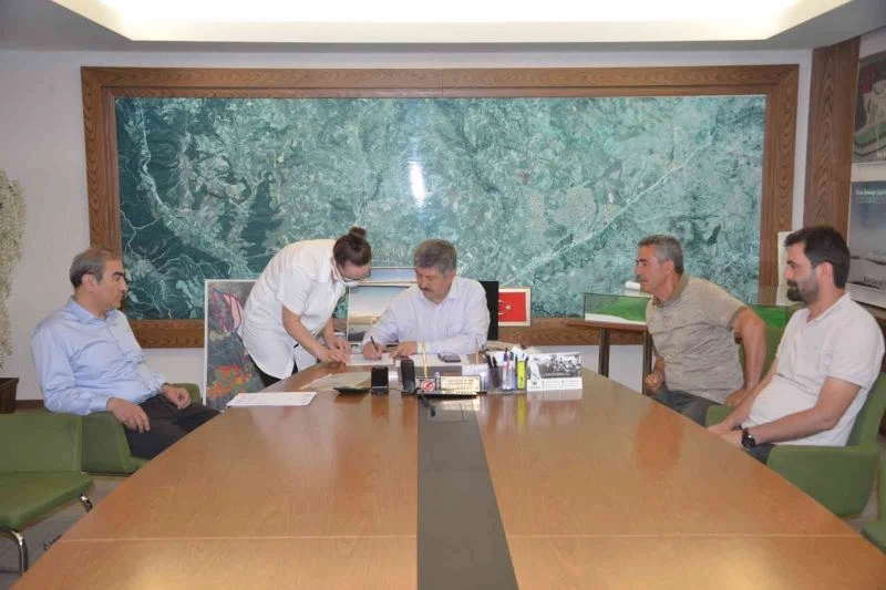 Başkanlık Makamında düzenlenen sözleşme imzalama törenine Gediz Belediye Başkanı Muharrem Akçadurak, yüklenici firma yetkileri katıldı.