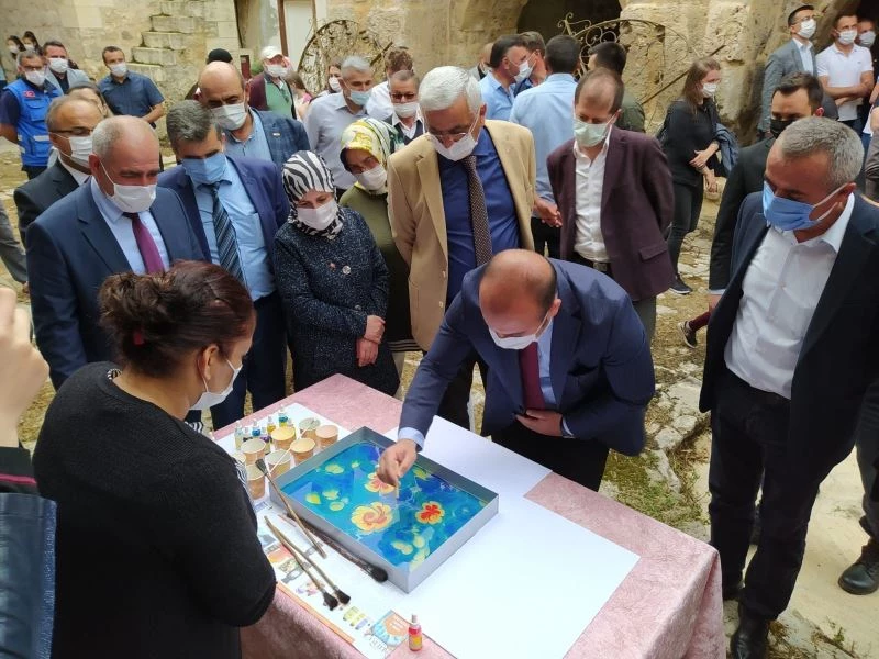Isparta’nın Gelendost ilçesinde Halk Eğitim Merkezi Müdürlüğü tarafından açılan yılsonu sergisinde el emeği eserler sergileniyor.