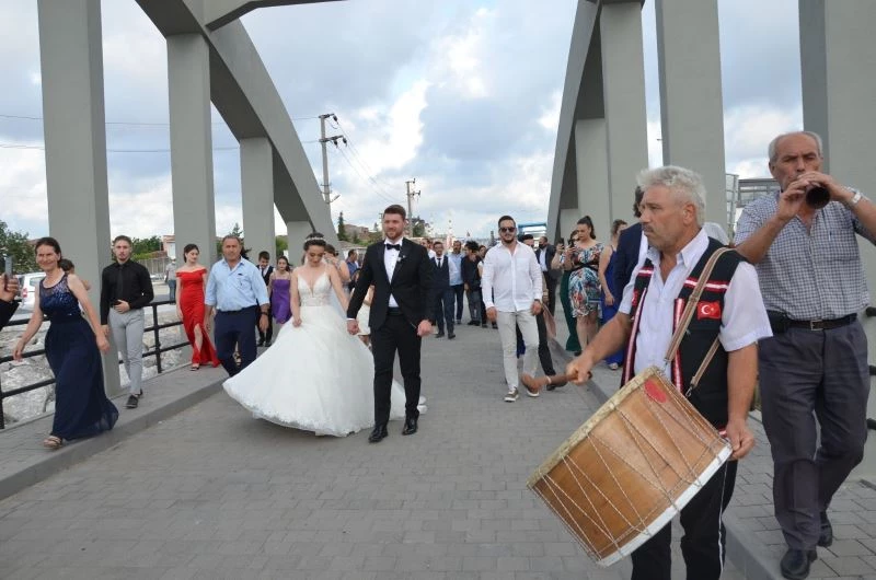 Gelin ve damatlar köprüden geçmek için sıraya giriyor