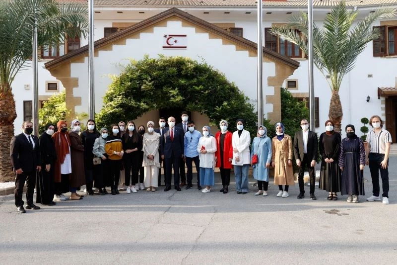 KKTC Cumhurbaşkanı Ersin Tatar, Genç Diplomasi Akademisi’nin öğrencilerini ağırlamaktan memnuniyet duyduğunu belirtti. “Siz gençlere olan güvenimizle Türkiye Cumhuriyeti ile KKTC arasındaki iş birliğinin, karşılıklı temasların ve dayanışmanın kıymetli olduğunu düşünmekteyim” diyen Cumhurbaşkanı Tatar, iletişim çağının sağladığı kolaylıklarla yakınlaşma ve duygu birliğinin daha da arttığını dile getirdi. Kıbrıs Türk tarihine değindiği konuşmasında Cumhurbaşkanı Tatar, tarihten gelen bağların önemine vurgu yaptı. Kıbrıslı Türklerin geçmişte adada EOKA saldırılarına maruz kaldıklarını, zulüm ve soykırımla karşı karşıya mücadele verdiklerini anımsatan Cumhurbaşkanı Tatar, Türkiye’nin desteğiyle Kıbrıslı Türklerin adada var olmayı başardıklarını söyledi.