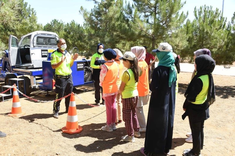 Bu yıl ilk kez Genç KOMEK’e kayıtlı öğrencilerin küçük yaşta bisiklet eğitimi almaları ve bilinçlenmeleri amacıyla kurulan Bisiklet Trafik Eğitim Parkuru, çevre dostu bir parkur olarak öğrencilere hizmet veriyor. Bu parkurda bisiklet kullanım kurallarını ve trafik levhalarının anlamlarını öğrenen minik öğrenciler; kask, dizlik ve dirseklik gibi güvenlik önlemlerini aldıktan sonra trafik polisleri eşliğinde uygulama eğitimlerine katılıyor. Beyşehir Yolu üzerindeki Kent Ormanı’nda ve Meram Dutlukır Kamp Alanında 20 Ağustos’a kadar devam edecek kamplarda; halat çekme, okçuluk eğitimi, kazı alanı eğitimi, survivor parkuru, bocce, mantar toplama, bisiklet trafik eğitimi parkuru, trafik simülasyon parkuru, gol oyunu, ipli denge oyunu, çuval yarışı, çubuk yakalama oyunu, sandalye kapmaca, şapka oyunu, s.o.s oyunları oynayan öğrenciler, dinlenme zamanlarında ise sağlıklı beslenme, ilk yardım ve trafik konularında eğitimlere katılıyor.