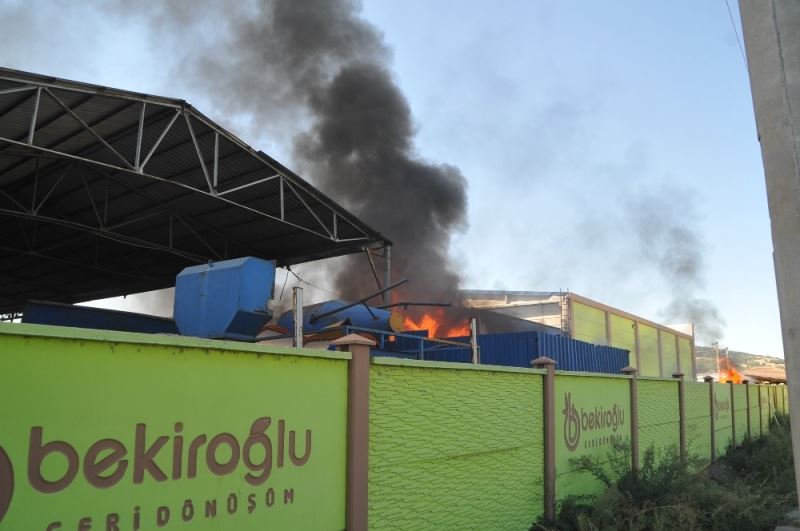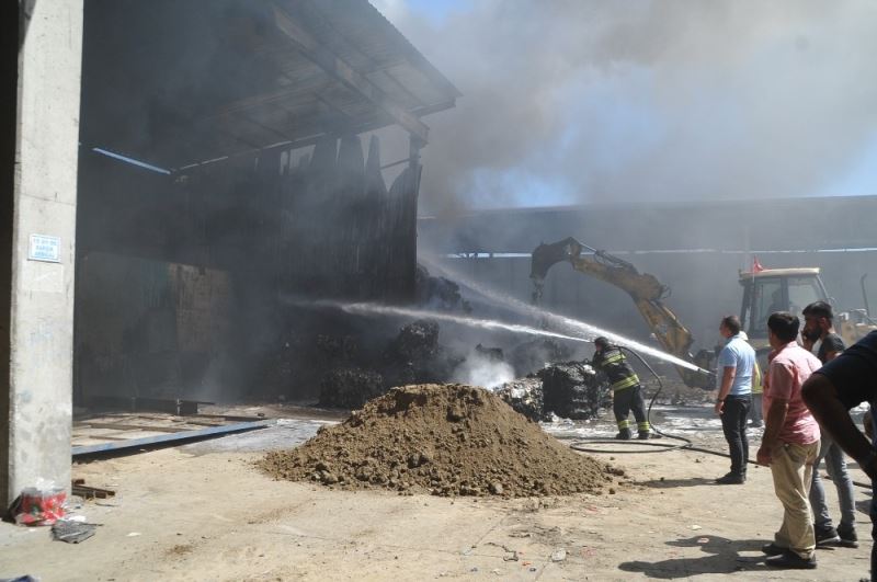 OSB’de bulunan bir geri dönüşüm tesisinde kaynak yapılırken sıçrayan kıvılcımlar, preslenen geri dönüşün paketlerini tutuşturdu. Kısa sürede alev alan geri dönüşüm paketleri tesiste korku dolu anlar yaşanmasına neden oldu.