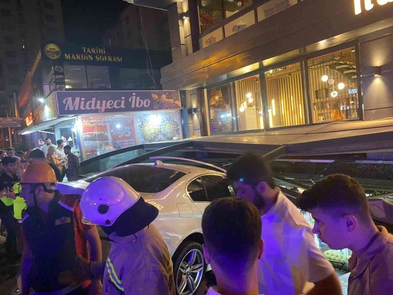 Talihsiz kazada otomobilde bulunan 2 kişi ile kafede oturan 2 müşteri hafif yaralandı. Yaralıların, Mardin Eğitim ve Araştırma Hastanesinde tedavileri gerçekleştirildi. Kaza anı ise saniye saniye kameralara yansıdı.