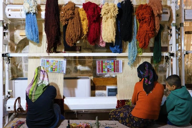 Kahramanmaraş’ta Roma mezarının bulunduğu tarihi konakta, el emeği göz nuru el dokuma halılar Germanicia ve Dulkadirli motifleriyle ilmek ilmek işleniyor.