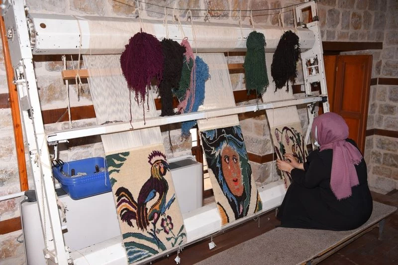 Dulkadiroğlu Konağı’nda düzenlenen halı dokuma kursuna kadınlar yoğun ilgi gösteriyor. Kursta, tarihi ve kültürel motifler ilmek ilmek halılara işleniyor.