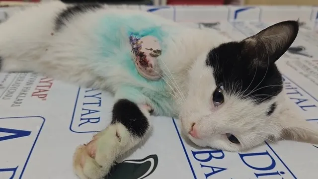 Osmaniye’de girdiği araç motorunda sıkıştığı tahmin edilen sokak kedisinin sağ ön patisi ampute edildi. Yaklaşık 1,5 saat süren operasyonun ardından 2 gün yoğun bakımda kalan ‘Sütlaç’ isimli kedi, hayvansever çevre mühendisi Nurten Yapça tarafından sahiplenildi.