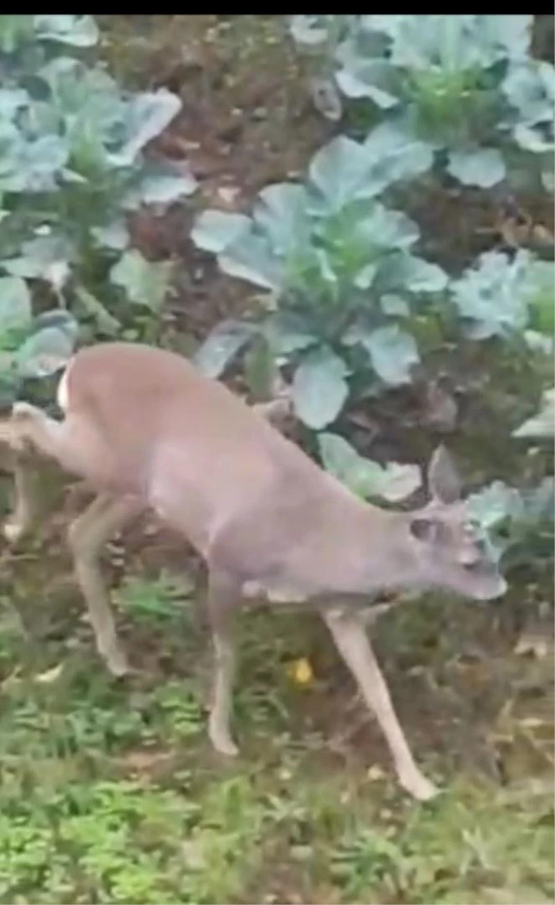 Giresun’da aç kalan karacalar il merkezindeki bir sitenin yanındaki bahçeye girerek karınlarını doyurmaya çalıştılar.