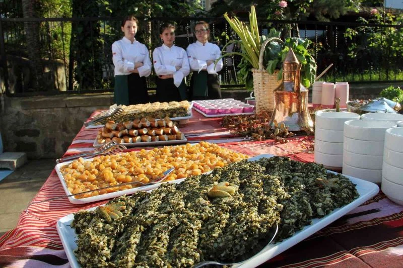 Okulun öğrencilerinin hazırladığı kara lahana çorbası, mısır ekmeği, üzüm pekmezinden yapılan samaksa tatlısı, kiraz tuzlaması, sakarca, diken ucu kavurması, galdirik, bezelye kızartması gibi yöresel yemekler sergilenerek, tarifleri ve yapılış aşamaları anlatıldı.