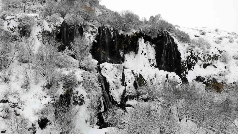 Erzincan’ın Çağlayan beldesindeki Girlevik Şelalesi, yağan karla adete gelinlik giydi. Yaz aylarında yerli ve yabancıların akınına uğrayan şelale, karla birlikte ayrı bir güzelliğe büründü.