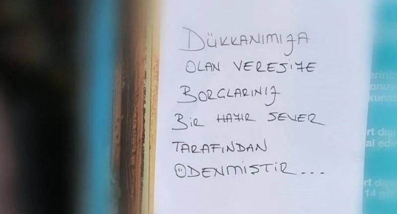 İlçede kimliği gizli tutulan bir hayırsever, mahalle bakkallarına borcu olanların borçlarını ödedi. Bakkala borcunu ödemek için gelen vatandaşlar ise borçlarının olmadığını duyunca sevinçten havaya uçtu. Borcunu ödemeye gelenlere durumu anlatan mahalle bakkalları, vatandaşların çok sevindiğini belirterek, "Uzun yıllar borcu olanlar vardı. Durumları iyi olmayan vatandaşlarımız borçlarını ödemekte güçlük çekiyordu. Bu duruma çok sevindiler. Allah hayırsever vatandaştan razı olsun dediler. İnşallah bu iş öncü olur da böyle hayırseverlerin sayısı çoğalır" şeklinde konuştu.