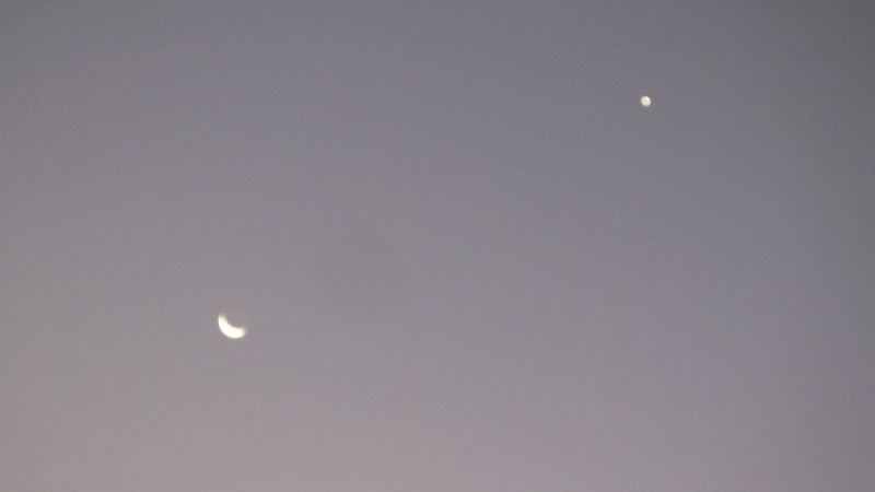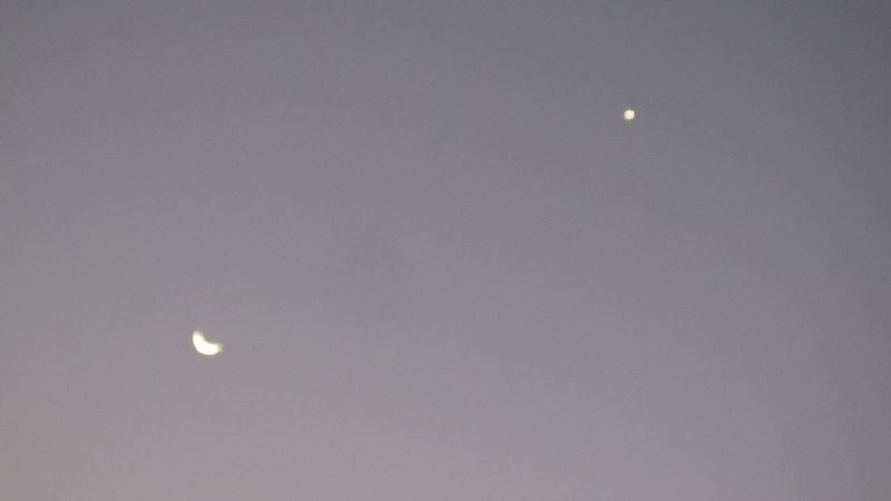 Gökyüzünde ay ile yıldızın duygulandıran buluşması