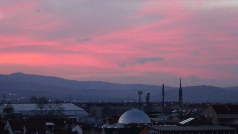 Bursa İnegöl’de gökyüzü akşam saatlerinde kızıl bir renk aldı. O anlar kameraya böyle yansıdı. Özellikle lodoslu havaların olduğu zamanlarda bu tür görüntülerin ortaya çıkması dikkat çekiyor.
