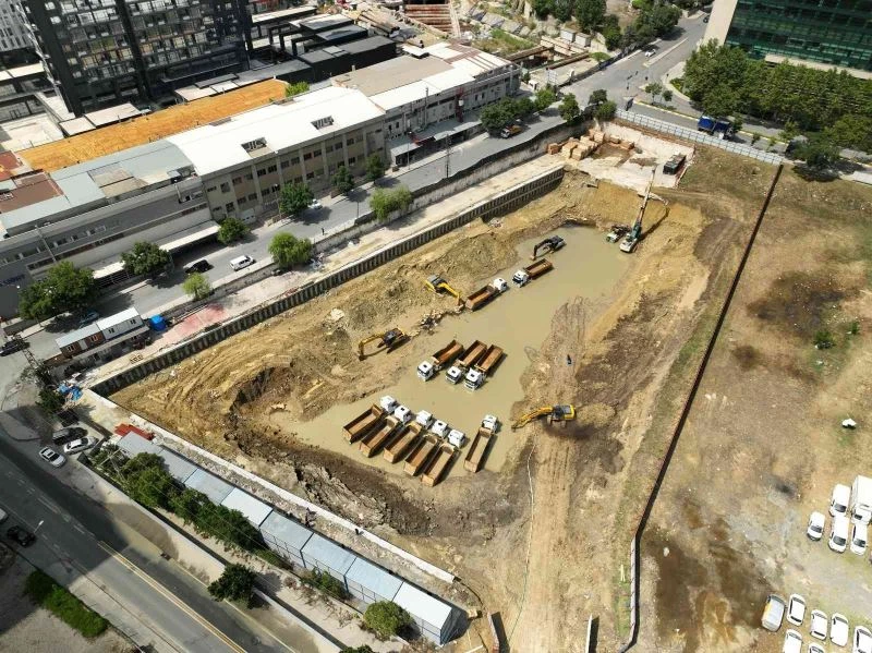 Göle dönen şantiyedeki hafriyat kamyonlarını kurtarma çalışması sürüyor