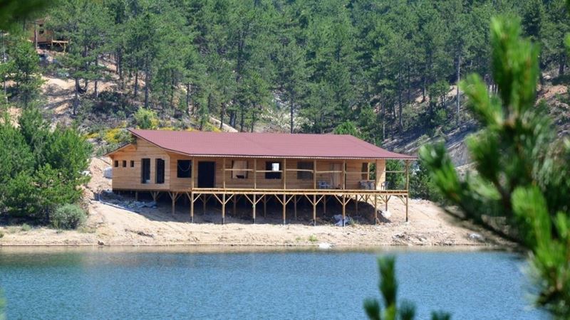 Gölet, orman ve bungalov evleri eşsiz bir manzara sunuyor