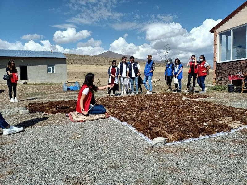 Köy hayatını merak eden Palandöken Gençlik Merkezi Gençlik Liderleri ve gönüllü gençler, Muratgeldi Mahallesi’ne giderek bir günlük köy hayatı yaşadı. Yün çırpan gençler, koyun otlattı ve ev işleriyle vakit geçirdi.