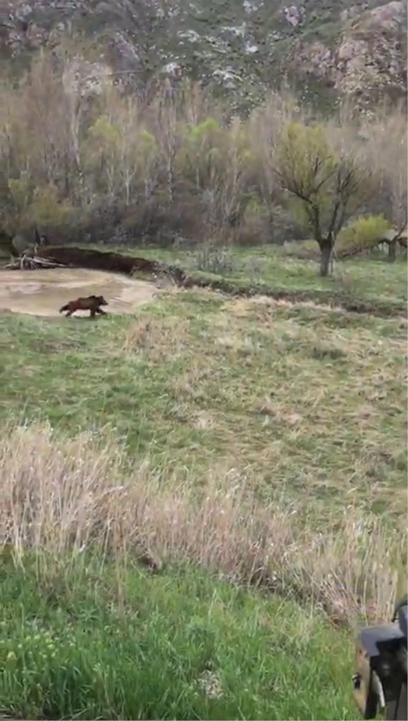 Korona virüs ve kene nedeniyle insanların uzaklaştığı doğada yaban hayvanları köylerin yakınlarına inmeye başladı. Sivas’ın Hafik ilçesine uzaklığı 26 kilometre olan Celalli köyü yakınlarında ayı görüntülendi. İlçede kepçe operatörü olarak çalışan Erdal Aytan aracıyla işe gittiği sırada yol üzerinde ayı ile karşılaştı. Aç olabileceği düşüncesi ile ayıya yemek vermek için aracını durduran Aytan, o anları cep telefonu kamerası ile kaydetti. Aytan, kaydettiği görüntülerde ayıyı “gel gel” diyerek çağırması dikkat çekti. Görüntülerde hızla koşan ayı bir süre sonra kaçarak gözden kayboldu.