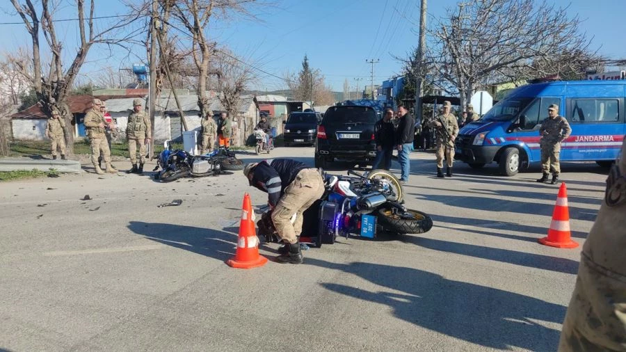 Osmaniye'de göreve giden iki jandarma motosiklet timi, kontrolsüz çevre yoluna çıkış yapan otomobille çarpıştı. Savrulan motosikletlerdeki Mete P.,Tugay K. ve Burak A. isimli asker yaralandı.