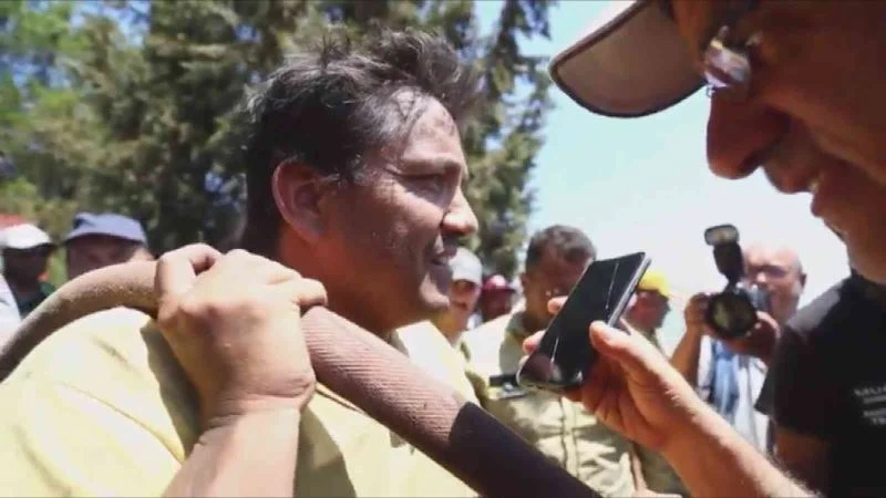 Datça’da yaklaşık 25 saat canla başla alevlerle mücadele eden işçilere, Cumhurbaşkanı Recep Tayyip Erdoğan arayıp teşekkür etti. Cumhurbaşkanı Erdoğan ile görüşen işçilerin görüşme yaptığı telefonun Bakan Kirişci’ye ait ve kırık olması görenleri şaşırttı.