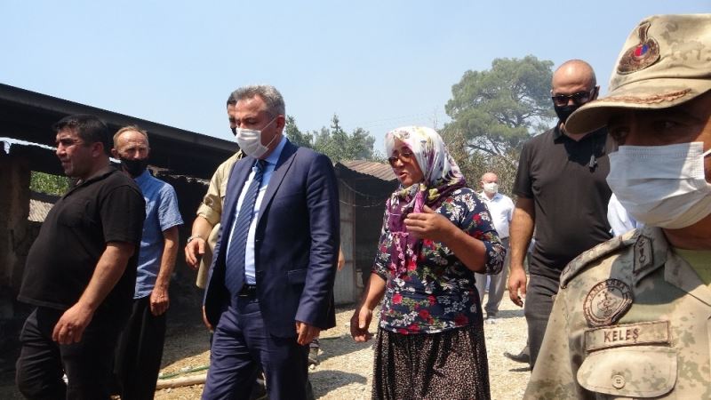 Yangında kimsenin canına zarar gelmemesinin en büyük teselli kaynağı olduğunu belirten Çelik, “Bundan sonra Aile Bakanlığımız yardıma geliyor. Çevre Bakanlığımız ile AFAD ekipleri köyleri geziyor. Kimin ne zararı varsa hepsi telefi edeceğiz. Tüm yetkililer burada kimin ne eksiği varsa yerine koyacağız. Acil olarak yarın ailelerimize maddi yardımlar dağıtılacak. Elektrik belki yarın sabaha kadar verilmeyecek. Yangını tetikleyebilir. Vali Bey’in mücadelesi evlerin boşaltılması çok önemliydi. Çok büyük bir alan yandı. Devlet sizin ve milletin devleti. Hatice abla ben senin kardeşinim. Sen buralara uğrama arkadaşlar burayı toparlasın biz hepsini halledeceğiz. Hasar tespit yapılıyor. Hayvanları kaldıralım hastalık olur. Muhtarlarımız ekiplerimize yardımcı olsunlar. Tüm Bakanlığımız burada devlet sizin devletiniz. Tüm kurumlar emrinizde. Cumhurbaşkanımızın talimatı var. En kısa sürede sizi normale döndüreceğiz.” diye konuştu.