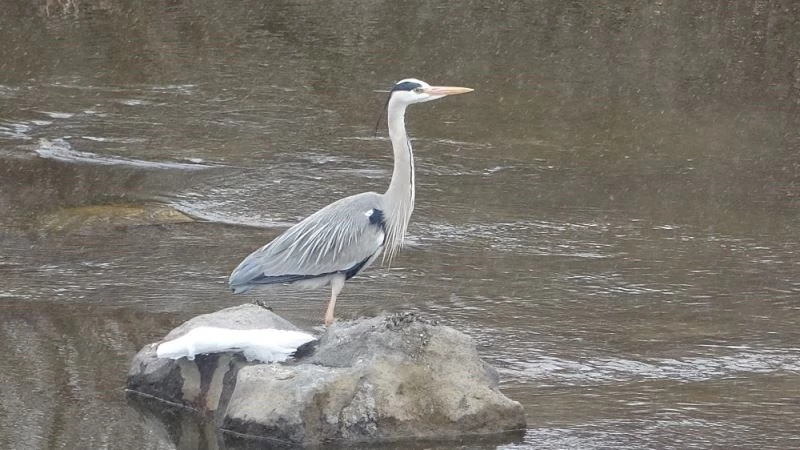 Baharın müjdecisi gri balıkçıl kuşları Ardahan’da kar sürprizi ile karşılaştı.